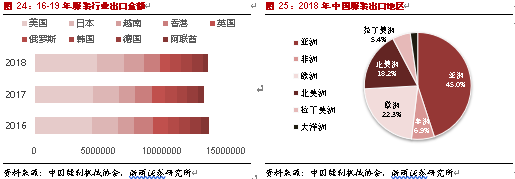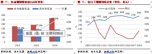 寡头格局打造全球缝制设备行业头把交椅 公司是全球唯一布局缝制前端+中端的设备制造商。公司通过收购迈卡、VBM不断完善产品布局,打造一体化服装智能制造解决方案供应商。自2015年来,公司始终保持高于行业的增长,连续超越飞跃、标准、中捷,市占率年提升2到3个百分点。2018年杰克股份实现营业收入41.52亿元,坐上全球工业缝制设备行业头把交椅,裁床技术领先全球。缝纫设备目前国内前百强企业的设备销售规模近200亿,随着人工替代的确定性行业需求趋势,未来5年市场空间预期有望达到300亿以上。公司大力投入的智能化中高端设备渗透率将成为业务增长重点。2019年上半年公司的智能缝制板块收入6748万元,同比增长109%,作为未来发展趋势,高附加值产品占比还有望进一步提升。 有望率先于行业周期底部复苏,杰克品牌逆势布局中高端市场 受全球经济放缓、工缝机内在更新周期等因素影响,设备行业自2018年下半年出现景气下行,2019年形成行业低点,2020年有望实现底部复苏。由于近两年设备投资需疲软,行业内竞争加剧,在行业内企业大幅减产减员的大环境下,公司基本维持了相对稳定的收入规模,2019年全年销量下降幅度明显小于行业。未来杰克股份将受益于中高端设备需求产值提升带来的市场规模扩张和下游洗牌后的集中度提升。公司逆势坚持投入中高端产品线的研发突破,2018年公司研发费用为2.05亿,同比增长54.68%,占收入比重4.9%。公司规划建设杰克智能高端缝制装备制造基地,第一期将在年底投产。杰克股份逆势布局中高端市场转型,厚积薄发,静待享受行业企稳后的量价齐升。 下游传统纺服产能转移东南亚,海外潜在需求带来设备增量市场 受中美贸易战影响,大环境的不确定性加速了中国服装产能向外转移的进程。而东南亚的人力成本优势,未来产业规模巨大。假设中国出口产能转移50%,且全部转移至东南亚地区,则会产生1386亿美元的新厂服装产能(以18年出口额计算),大约能带来1213万台设备需求。中国工业缝纫机平均出口价格为300美元/台,这将带来约36亿美元的工缝机潜在增量市场。与日本高端机相比,中国的工业缝纫设备出口定位更符合东南亚市场潜在投资需求。目前杰克股份有近一半收入来自海外,海外重点市场正是目前服装出口额和缝纫机进口额双升的东南亚国家,布局已占据先机。 |