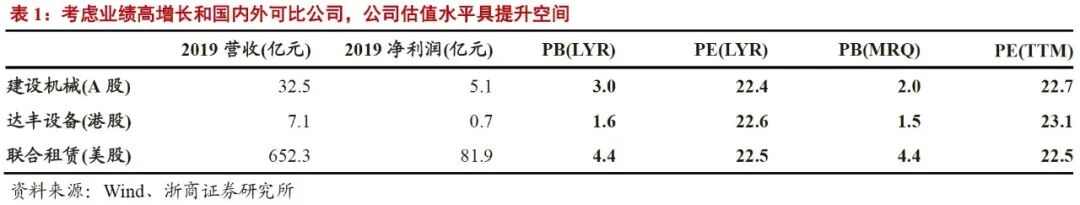 可比公司:全球设备租赁龙头美国联合租赁,国内对比公司为国内第二大塔机租赁商达丰设备。