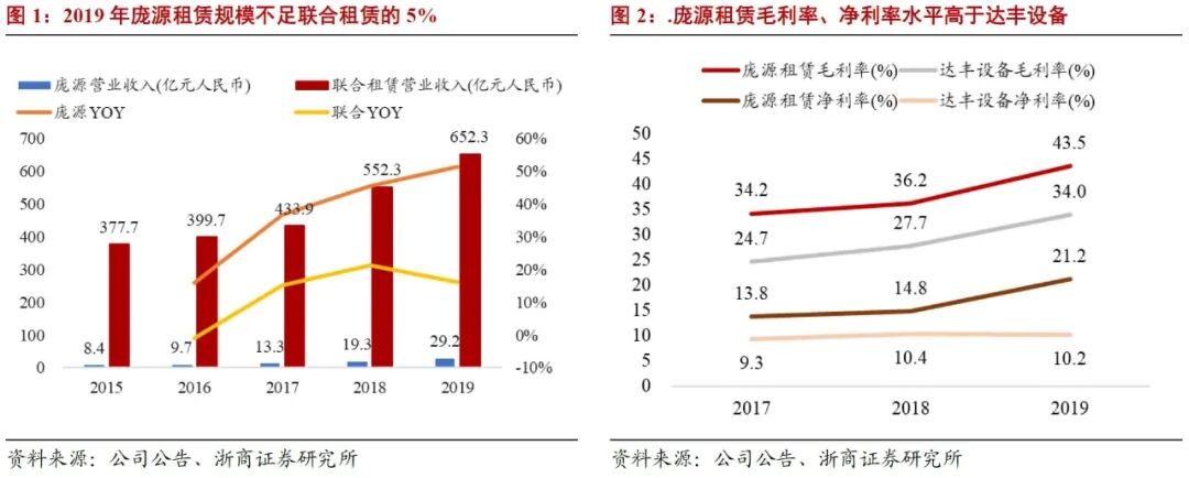 2019年联合租赁的营业收入达652.3亿人民币,同期庞源租赁收入为29.2亿元,不足联合租赁的5%,成长空间巨大。