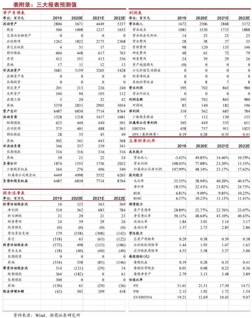 2020年公司全年业绩有望实现快速增长。公司2020年前三季度收入同比大幅增长44%。根据公司近期发布的2020年业绩预告,公司预计2020年度归属于上市公司股东的净利润范围为4.2-4.7亿元,同比增长38.8%-55.3%。