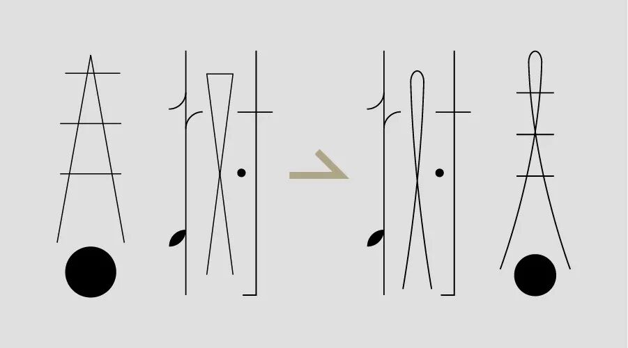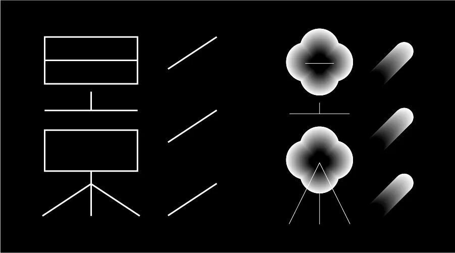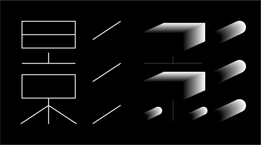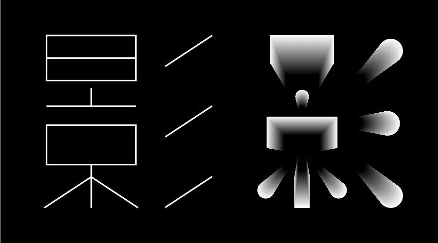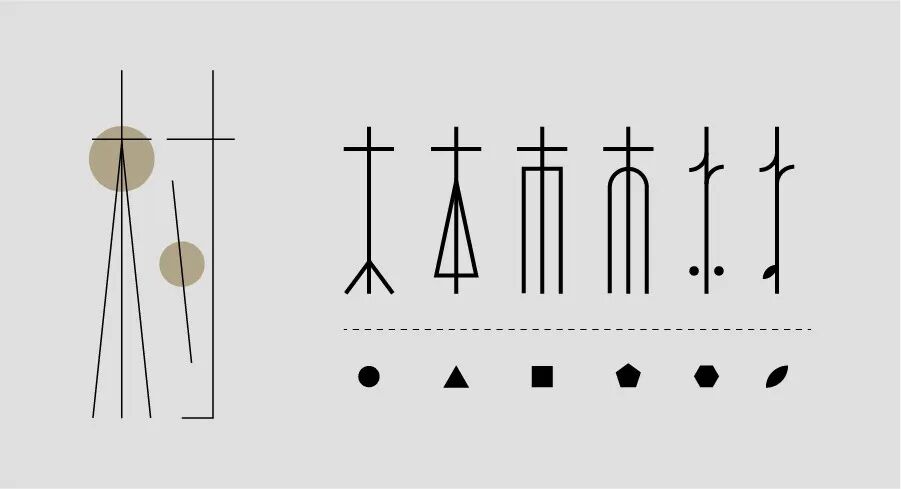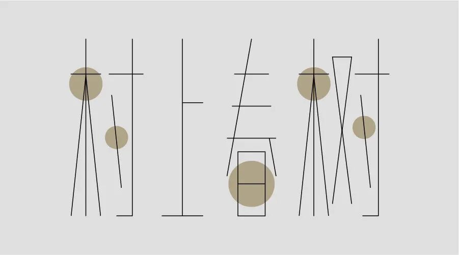 其实没那么复杂,说的通俗一些,就是发现每个字的笔画之间的关联和相似性,通过几何化或者图形化的手法把近似笔画关联起来。从而设计出有设计节奏和变化的字形。我们来做几个案例试试。