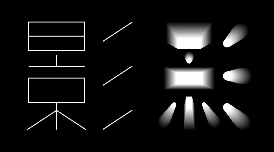 说回“影”这个字,从具象出发可以联想到投影,光打在物体上产生的自然现象,但实际操作中发现实现不了太好的效果。