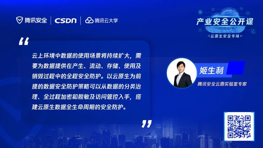 腾讯安全云鼎实验室专家姬生利聚焦云原生数据安全中台应用,详细介绍了云原生数据中台的挑战、数据安全保护策略模型以及解决方案,为企业提前规避在资源隔离、数据存储、数据传输、数据共享、虚拟化等方面可能存在的业务风险提供帮助。