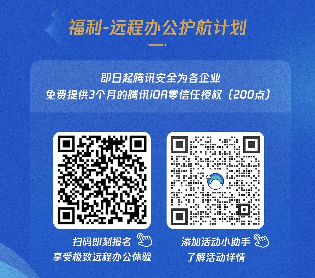 在腾讯iOA零信任安全网络架构下,无论访问人员在哪,使用何种终端,是否安装客户端,访问任何企业应用都无需使用VPN;通过终端可信评估、多因素可信认证和动态鉴权访问控制,实现无边界的安全办公。