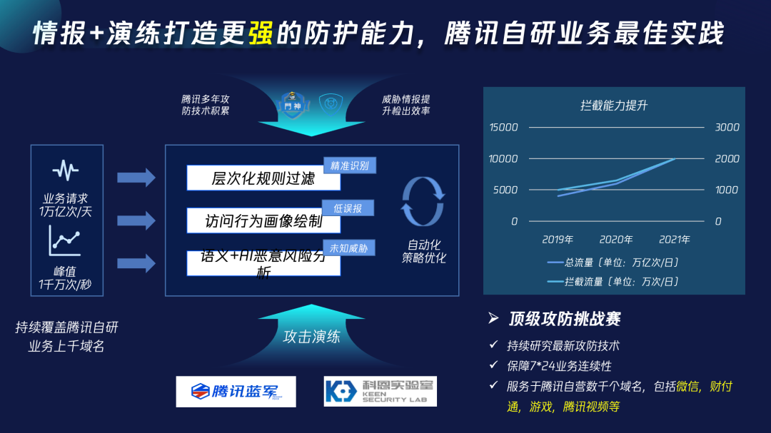 “第三板斧”则借助是腾讯蓝军和科恩实验室的不断攻防演练,不断加强防御能力,有效应对不断变化的新型Web攻击。