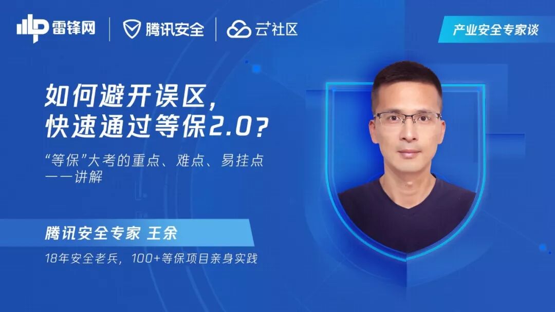 腾讯安全联合雷锋网、云+社区打造的「产业安全专家谈」,本期邀请到腾讯安全专家王余为大家详解等保大考的考点。王余是一名18年的安全老兵,拥有100+等保项目亲身实践,还拥有等级保护测评师、国际注册信息安全审计师、国际云安全联盟认证、ISO27001主任审核员、国家注册信息安全专业人员等多项资质。