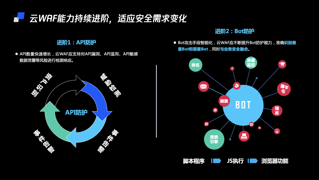 面对云上网络攻击的不断演进及BOT流量的激增,WAF安全解决方案的探索和创新已成为全球安全厂商新的发力赛道。与此同时,伴随着容器化、微服务和开发运维(DevOps)等技术的成熟,WAF产品正向云原生WAF演进,并能更好地适配云计算环境对网络安全更细粒度、更敏捷、更弹性的要求。