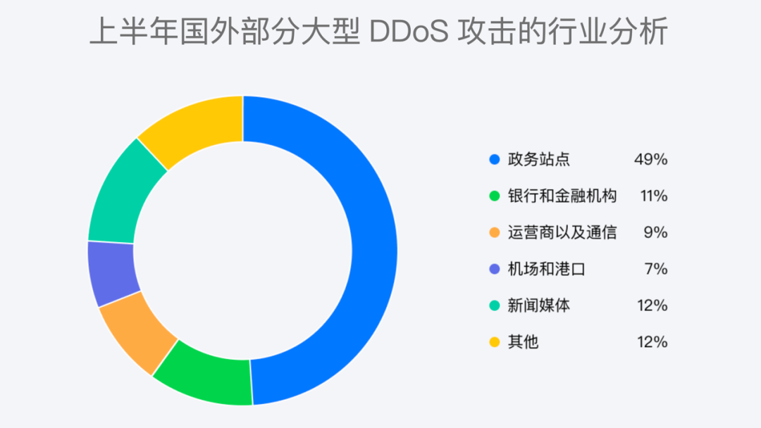 银行及金融机构、运营商及通信、机场及港口等基础设施部门,一方面,和人们的工作生活息息相关,一旦遭受攻击影响重大;另一方面,其攻击频率没有游戏和视频直播行业高,因此相关机构往往缺乏必要的安全建设和应对预案。因此,政府部门和重要基础设施更需重视DDoS防护,必要时可借助于云原生的DDoS防护产品,快速补齐短板,轻松应对高级攻击团伙和Tb级攻击。