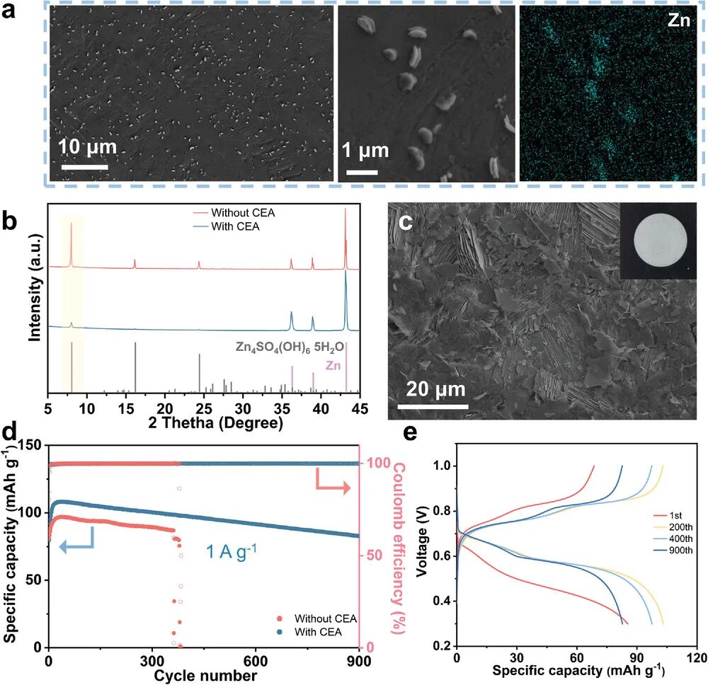 图2. CEA对锌金属电池稳定性的影响