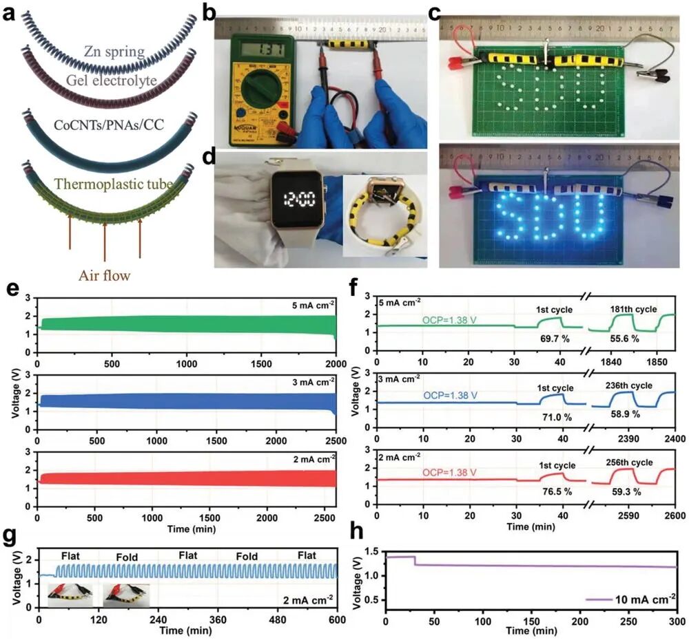 更重要的是,基于该电催化剂组装的全固态ZAB具有良好的柔韧性、优异的循环稳定性(在2 mA cm