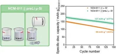 【做计算 找华算】理论计算助攻顶刊,10000+成功案例,全职海归技术团队、正版商业软件版权!经费预存选华算,高至15%预存增值! 使用Si作为负极材料的锂离子电池(LIB)比最先进的石墨基LIB具有更高的能量密度。然而,体积膨胀和相关动态表面的挑战导致固体电解质界面的连续(重新)形成、活性锂损失(ALL)和快速容量衰减。当Si与高容量但活性较高的富镍正极(如NCM-811)搭配使用时,电池故障会进一步加速。在此,德国明斯特大学Aurora Gomez-Martin、Egy Adhitama等人评估了基于锂金属的预锂化技术在基于粉末的Si电极中的实际适用性,以应对上述挑战。具体而言,作者采用锂热蒸发技术在微米级Si电极(µ-Si)上沉积锂金属(所需厚度≈1 μ m),得到的电极简称为“preLi µ-Si”。作者将该电极在双电极和三电极配置的锂金属电池和全电池配置(NCM-811正极)中进行了评估,这对于评估实际相关性和更全面的电化学分析是必要的。在本研究中,使用Si基负极与富镍NCM-811正极非常重要,因为这些材料有可能提高LIB的能量密度。进一步,作者还讨论了Li利用率(预锂化程度)和分布,研究了不同的电极容量平衡(N/P比)及其与能量密度的权衡。图1. preLi µ-Si的形貌及通过热蒸发沉积锂的示意图通过对不同N/P比的深入研究,作者发现1.2的N/P比会导致严重的容量损失,因此,选择6.8的N/P比作为“更安全”的选择。同时,NCM-811||preLi µ-Si全电池(25%的预锂化程度)可获得更高的≈192 mAh g-1的初始放电容量和77%的容量保持率,而NCM-811||µ-Si全电池容量仅为160 mAh g-1 且保持率为63%。此外,作者强调了关于预锂化的电池寿命和能量密度之间权衡的评论,介绍了活性材料水平的比能计算并与SOTA石墨基LIB进行了比较。虽然预锂化方法确实可以补偿初始和持续的ALL,但它仍无法解决其主要挑战(即体积膨胀)。尽管如此,本研究中讨论的现象将为使用锂金属热蒸发作为Si负极预锂化技术的研究提供一定的指导,以达到未来可应用包含Si作为负极的最佳电池系统(即使用1.03~1.2的N/P比)而不牺牲稳定性的地步。图2. µ-Si/preLi µ-Si电极循环后的横截面SEM分析On the Practical Applicability of the Li Metal-Based Thermal Evaporation Prelithiation Technique on Si Anodes for Lithium Ion Batteries, Advanced Energy Materials 2022. DOI: 10.1002/aenm.202203256【做计算 找华算】华算科技专注理论计算服务、正版商业软件版权、全职海归计算团队,10000+成功案例! 用户研究成果已发表在Nature Catalysis、JACS、Angew.、AM、AEM、AFM、EES等国际顶级期刊。添加下方微信好友,立即咨询计算服务: