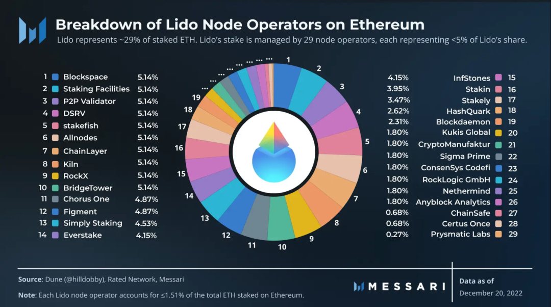 在今天的赌注池中,输赢是社会化的。如果 Lido 节点运营商失败,所有 stETH 持有者都会受到影响。因此,Lido 被激励将每个节点运营商的股份保持在最低水平,这样该集团就可以减少因任何一个网络运营商失败而导致的惩罚。事实上,Lido 的目标是确保每个节点运营者拥有的权益少于总权益的 1%。