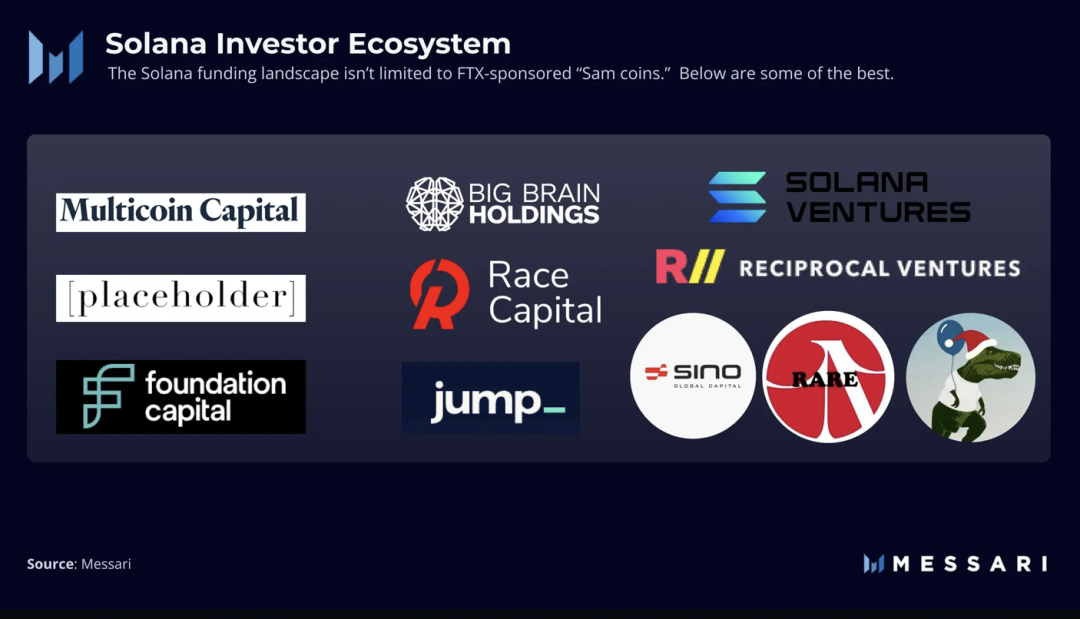 与该群体相关的非 FTX 投资者——即 Jump、CMS、Sino 和 Multicoin——一直是并且仍然是支持 Solana 生态系统不可或缺的一部分,Sam 代币除外。然而,风险投资方的投资者范围比该群体更广泛——Foundation Capital、Race Capital 等投资者早在 FTX 出现之前就已经是投资者了。
