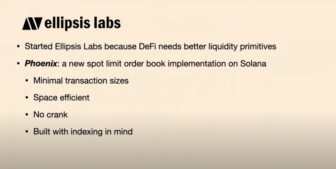 Ellipsis Labs 的 Phoenix 订单簿扩展了 Serum 最初的中央限价订单簿 (CLOB) 愿景,其中包含一系列旨在提高效率的设计决策,例如从 DEX 设计中删除操作密集型“启动”(定义)。