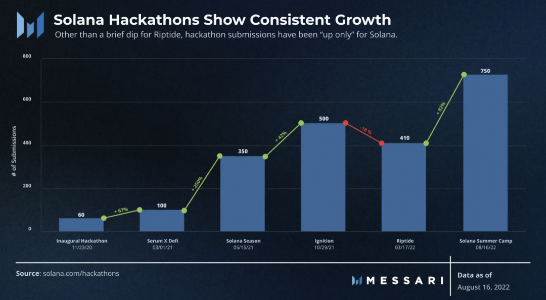 要了解这些新团队正在建设什么,观看黑客马拉松活动和 Solana 黑客之家是最好的选择。 2023 年阵容已经发布,包括孟买、奥斯汀、伊斯坦布尔、纽约等多个地点。迄今为止,黑客马拉松对 Solana 来说取得了巨大的成功。