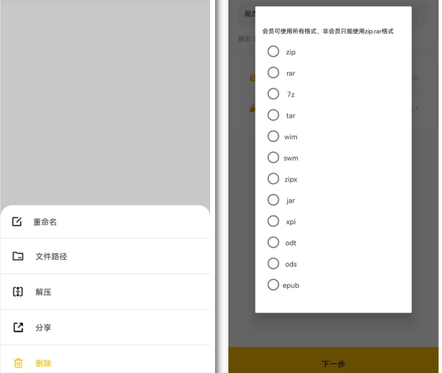 安卓端则是全能解压缩工具,使用前需要注册,登录后就是永久黄金会员,解锁不限次、全格式、无犷郜特权