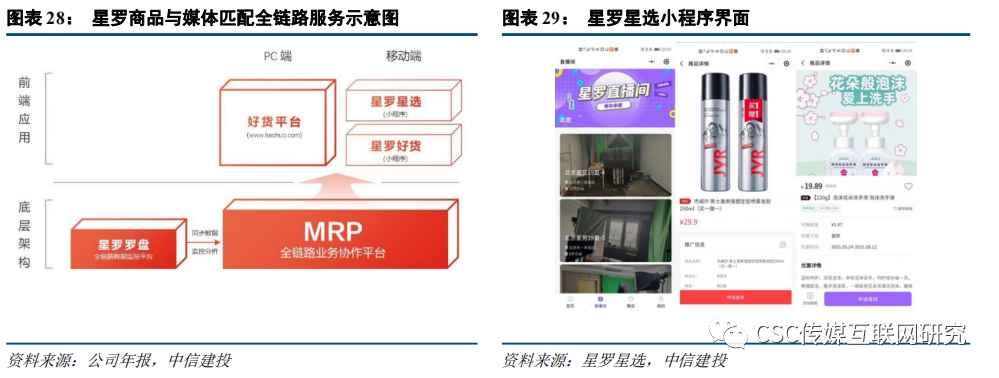 ①星罗:有达人带货服务(合作MCN机构200+,覆盖达人5000+,包括涂磊、小沈龙等)、为品牌建立蓝V自播账号和打造短视频内容、信息流投放与抖音/快手小店代运营服务。