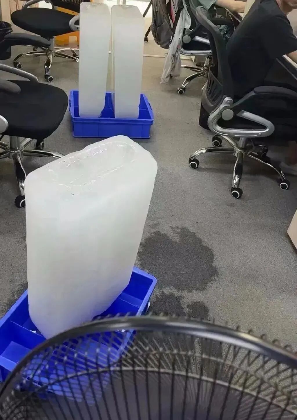 还有一些公司开始效仿古代人,大冰块消暑,用电风扇送冷气,没想到打工人也享受了一把华妃的待遇。