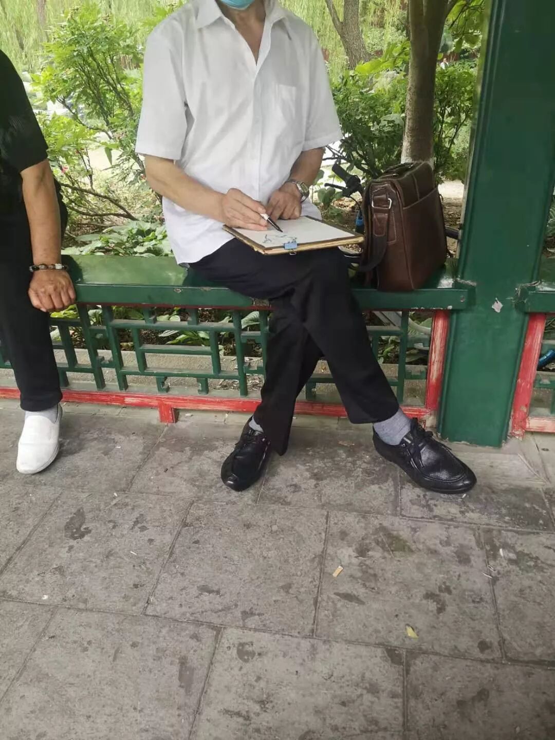 我碰见过一位 76 岁的大爷,头发都白了,就鬓角是黑的,走起路来慢悠悠的。他家住在南苑机场附近,每次来菖蒲河要坐一趟公交两趟地铁,他说自己不常来,但是其实我每次去都能看见他。对于找对象这件事,大爷表现得很佛系,说也不是特意过来的,就是来遛个弯儿,顺便看看。而「遛弯儿」似乎是这里的某种暗语。