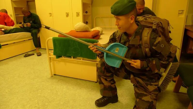 进入法国外籍军团主要就是三道门槛,从平民区进入蓝队,再从蓝队进入红队。这里面的每一步都有无数次严格的体能筛选和一些智商测试,等到进入红队之后,就能拿到合同,也就相当于正式入团了。在红队呆了大概两个星期之后,我被送到了新兵培训营,接受新兵训练。