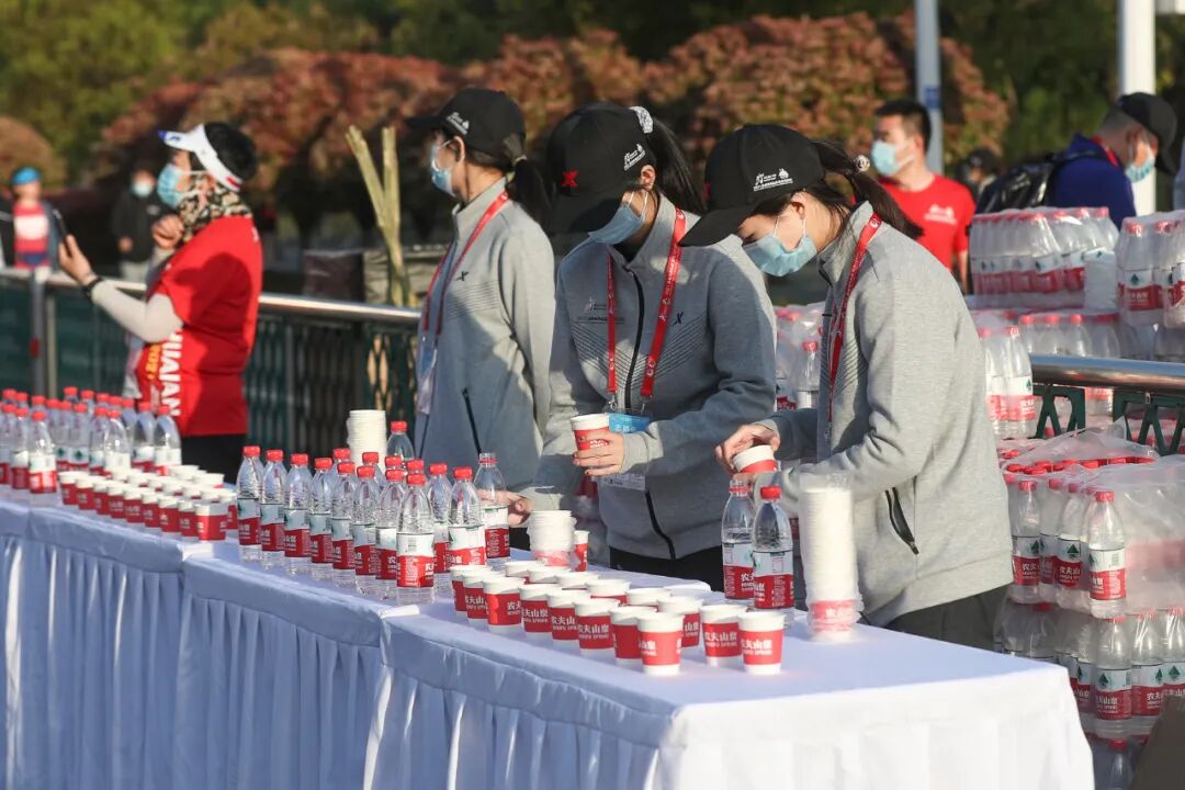 除了目之所及的热情外,贴心周到的服务彰显了“淮马”温度。2400余名大学生志愿者用青春洋溢的微笑与高质量的志愿服务,为选手带去如沐春风般的参赛体验;赛道沿途科学配备的8个饮料、饮水站,7个饮水、用水站和5个食品补给站,为广大跑友充能“加油”;19辆医疗救护车、50个流动AED医疗救援点和众多医护人员、志愿者,对比赛进行全程“监护”,为参赛者保驾护航。