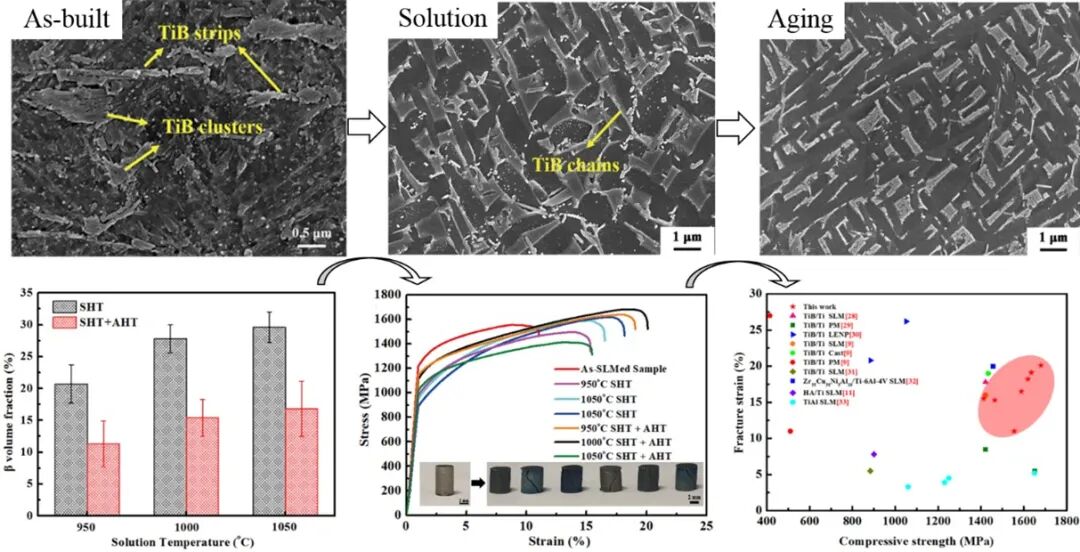 文章题目:Tailorable microstructure and mechanical properties of selective laser melted TiB/Ti–6Al–4V composite by heat treatment