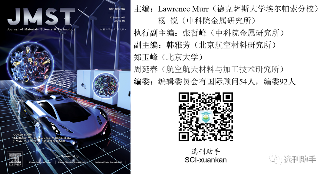 期刊简介:Journal of Materials Science & Technology《材料科学技术》简称《JMST》,1985年创刊。是中国科协主管,中国金属学会,中国材料研究学会和中国科学院金属研究所联合主办的国际性英文期刊,以“加强国际交流,扩大学术影响,服务经济建设”为办刊宗旨。刊登世界各国的具有创新性和较高学术水平的原始性论文,并设有物约综述、快报、简讯及国内外材料界杰出学者简介等栏目,内容包括金属材料、无机非金属材料、复合材料及有机高分子材料等。