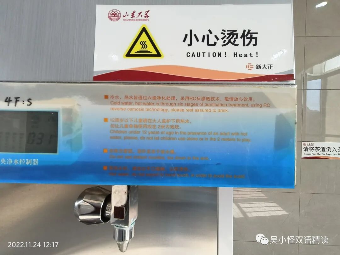 ④取热水时,请勿以手口碰触,以防烫伤。