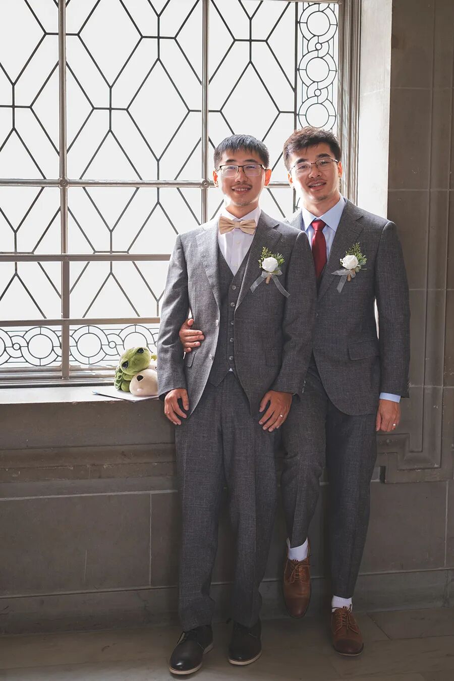 受新冠疫情影响,每对新人最多邀请六位亲友观礼。他们邀请了姚煜同在加州的姐姐和姐夫,以及4位好友到场。婚礼当天,他们带上了两个最受宠爱的宝宝“龟小贱”和“狗狗”,一位细心的女同学为他们带了一束白玫瑰。婚礼通过手机直播给几位天南海北的朋友观礼,姐夫用相机拍下了他们历史性的瞬间。