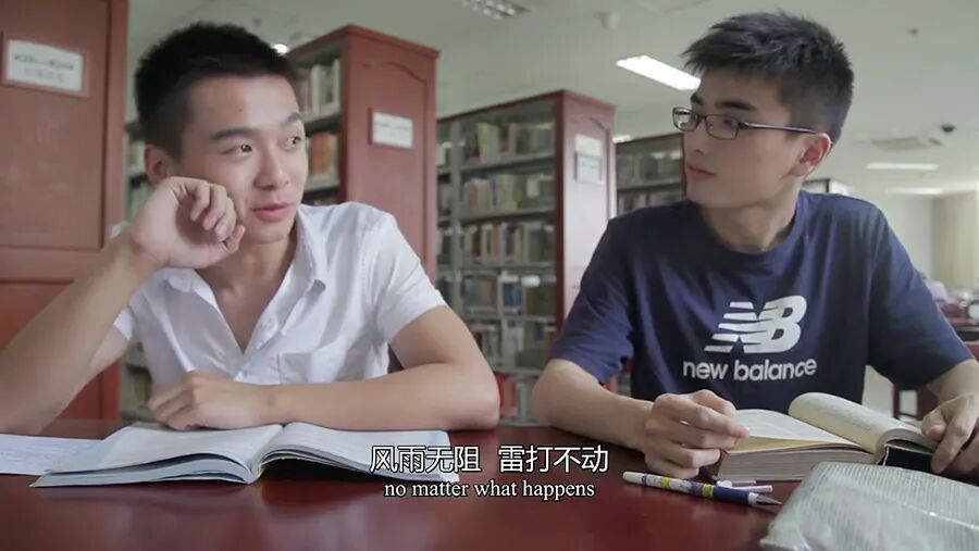 剧情以校园恋爱为主题,又在日常熟悉的场景里拍摄,让马铭远不用刻意入戏,就自然都在人物的状态里。片中两个主角谈恋爱的方式,就是一起上自习,一起去食堂,一起去逛同城的另一所大学,也正是马铭远和姚煜的日常。
