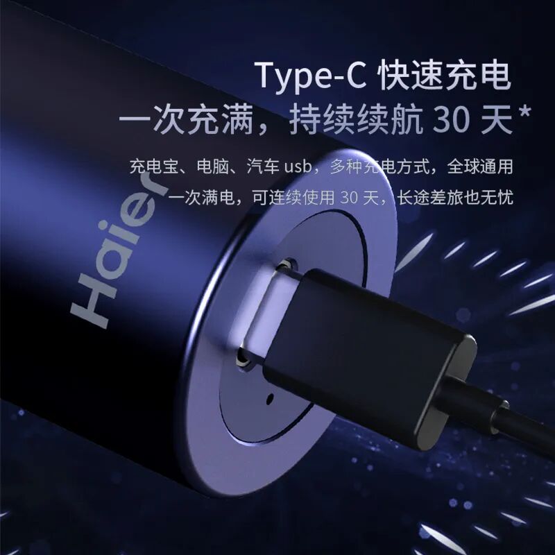 刀头和刀网通过金属卡扣固定,采用了一体式的设计。拆洗的时候避免伤到手,使用更放心。采用Type-C充电接口,兼容手机充电器,出差旅行只需带一根数据线,就能充电。找不到插座的话,插在车载电源和充电宝上一样能用。续航高达35分钟,每天剃须1分钟,一次充满可以用30天。此外这款剃须刀还有5分钟快充功能,如果忘记充电,只需一个刷牙的功夫就能剃须一次,没电也丝毫不慌,不要太贴心哦!低噪音设计 剃须快且净一键开关 超简单操作海尔剃须刀是静音低噪,不会有尖锐的风啸声,带给你更好的享受。整机只有一个按钮,一键开关,使用超简单,1秒就能上手。它还考虑到随身携带时可能会发生误触开机的状况,设计了旅行锁防止误操作。长按开关即可开/关旅行锁,无论是放在口袋还是背包、行李箱,都不会造成误启动耗电。此外小蓝筒精美的包装盒,送人自留都是不错的选择~~这样一款“小而硬核”颜值又高的剃须刀,还不趁着活动买起来,男人买来送自己,女人买来送老公,男友或者父亲,都是不错的选择哦!![]()