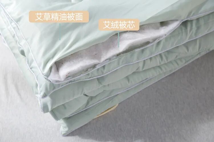 不过以往的艾绒被,只有被芯填充艾绒,被面用的是普通纤维,功效难免单一;贴身盖被时,