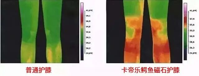 戴上磁石护膝以后,真材实料的磁石护膝,它发射的远红外线能逼出关节内寒气和湿气。