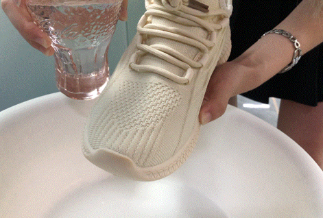 鞋子采用了市面上领先的黑科技,仿荷叶防水防污技术。模拟荷叶表面的纳米防水功能,像给鞋子穿了一层防护服一样。就算上面泼了咖啡之类的饮料,就像滴在荷叶上面一样,用水冲一下,鞋子上的咖啡渍就没了。![]()