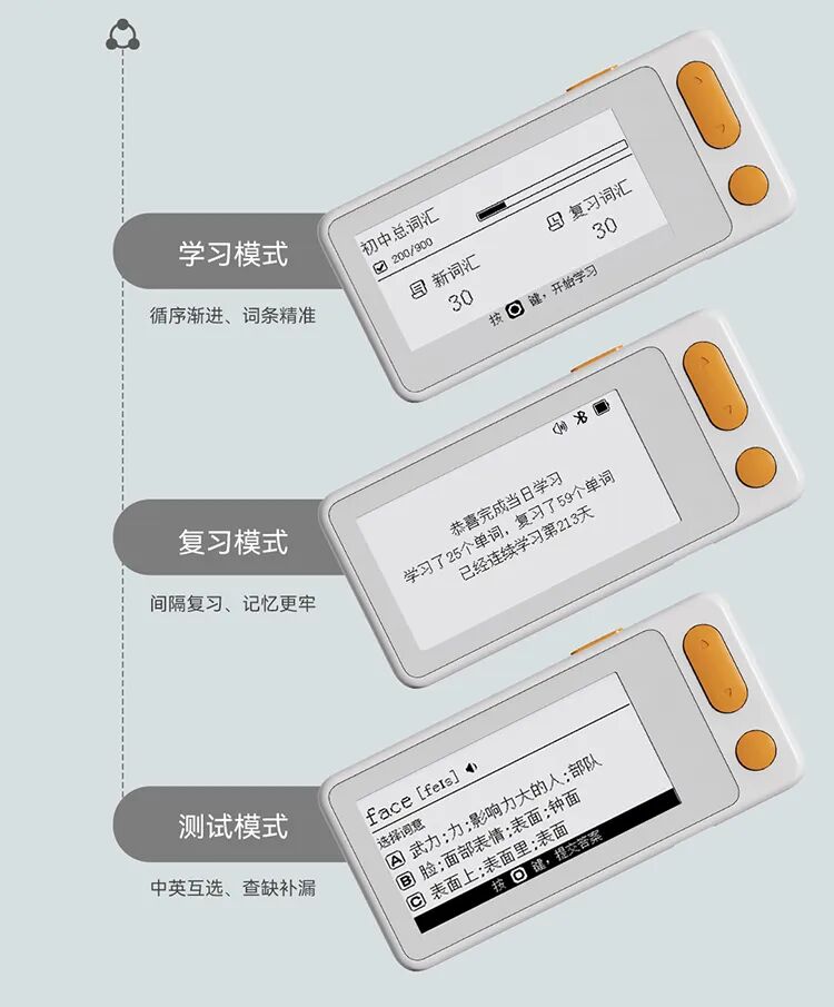 整体小巧可爱,和空调遥控器一般大小,一只手就能完全控制,专心背词