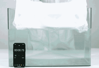 品牌方就做过以下实验,将T恤放在装有开水的杯子上不一会儿,水蒸气就通过面料的孔缝向上扩散。