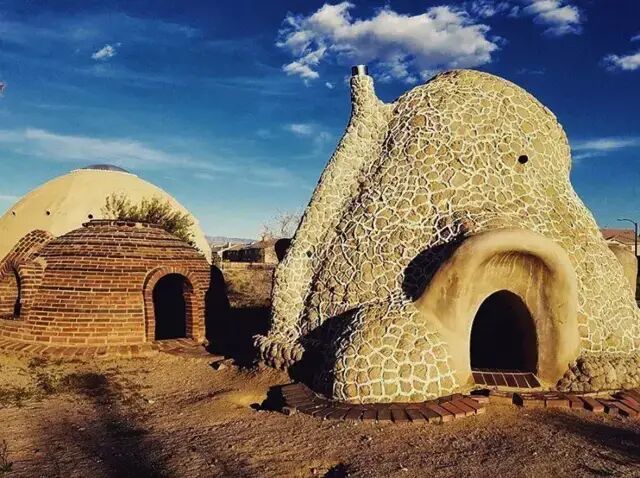 分层管或袋状“土包”层层叠合,作为墙体。产生的蜂窝结构采用拱支撑,形成了一个蛋状的外型。