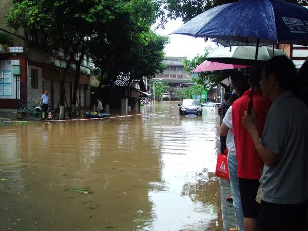 洪灾,还算手下留情。民国六年,大水狂涨两日,第一天便已经水灌玉堂街、道门口,第二天“水复涨,较前更高尺余”。所以民间口口相传,大佛老爷洗脚,道门口撑船,绝非虚言。如果这次也复如此,损失会非常惨重!我住在高北门,水只淹到油榨街中段,距离我住的地方还有相当距离,便已经遭遇停电五天,直到