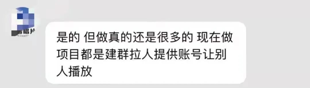 其中,一个淘宝商家称:“QQ音乐10万的播放量需要两天完成,我们都是团队操作,通过拉群派单人工切换账号。”