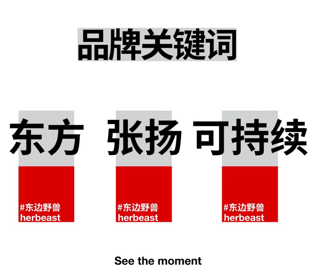 从东边野兽略显张扬的视觉上来看,他们也做出符合高端品牌的视觉标准,将审美也变成一件可持续的事情,在冲击力极强的红色和简约感中找到恰好的平衡,这也可以更有保障的让品牌视觉在爆发式的热度后不会过快过时,一个品牌的视觉可延续性也某种程度决定一个品牌的存活可能性。