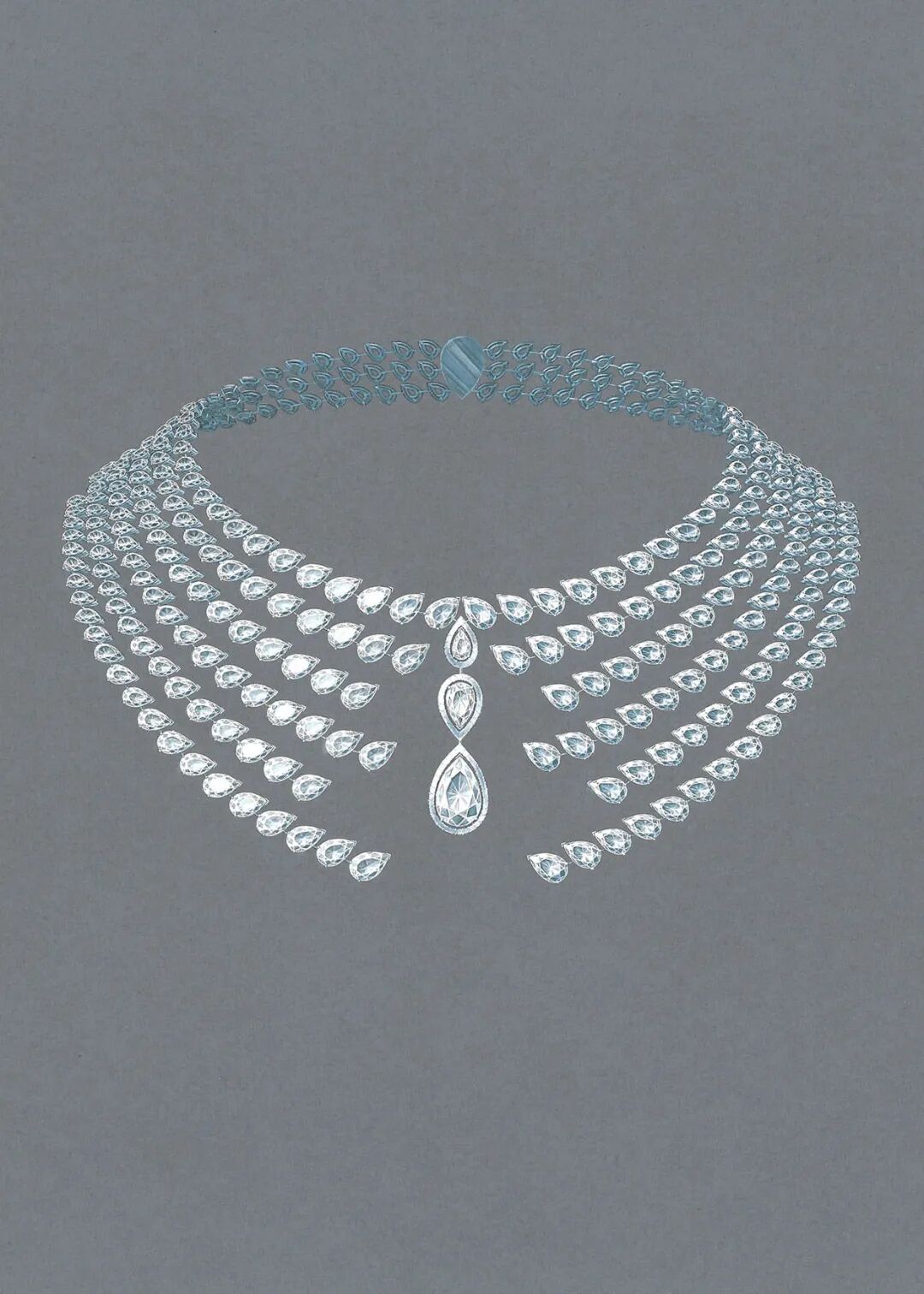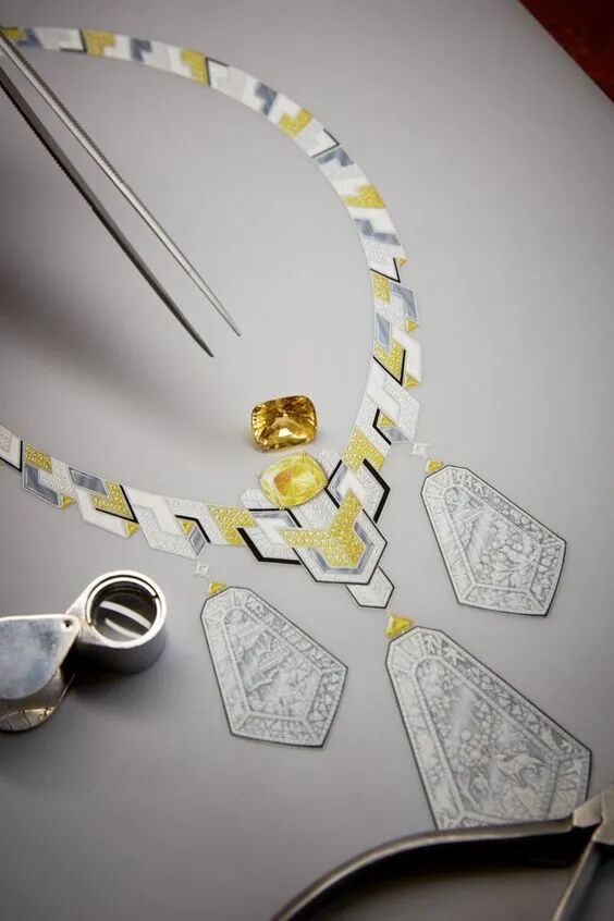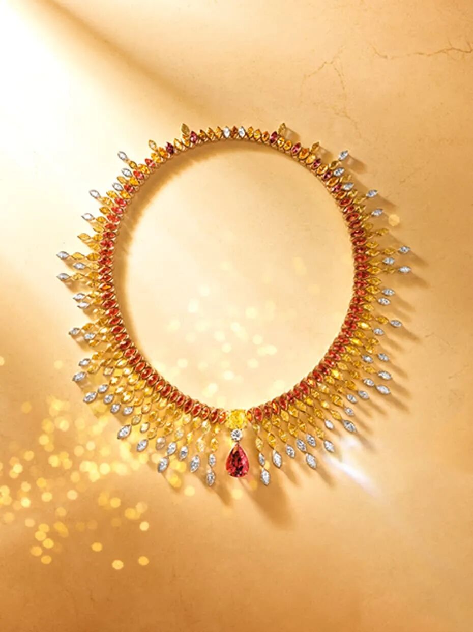 整个系列的灵感是世界遗产之一意大利阿玛菲海岸,阿玛菲海岸以碧海蓝天和绝美日光著名,所以这个系列的珠宝最大的特色就是用彩色宝石以及散射的线条来模拟光影变化。