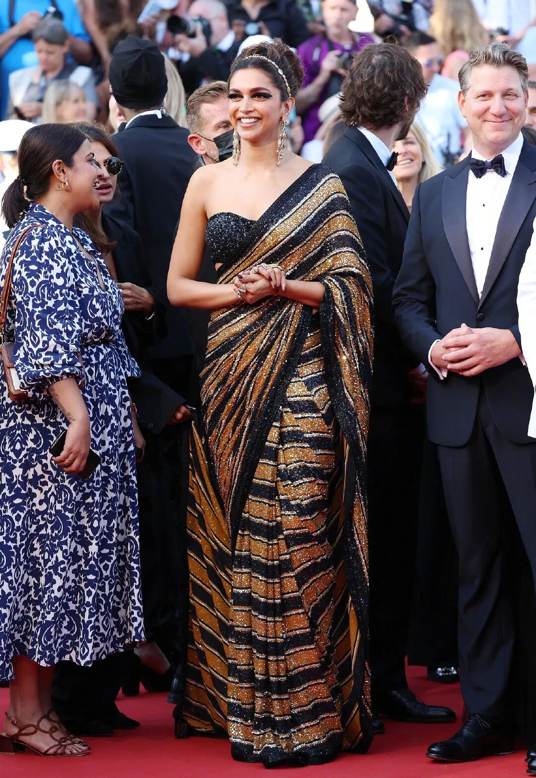 去戛纳当评审团的宝莱坞女演员Deepika Padukone的钻石项链来自卡地亚的高级珠宝系列。耀眼的红色礼服是她成为LV品牌大使之后第一件定制礼服。
