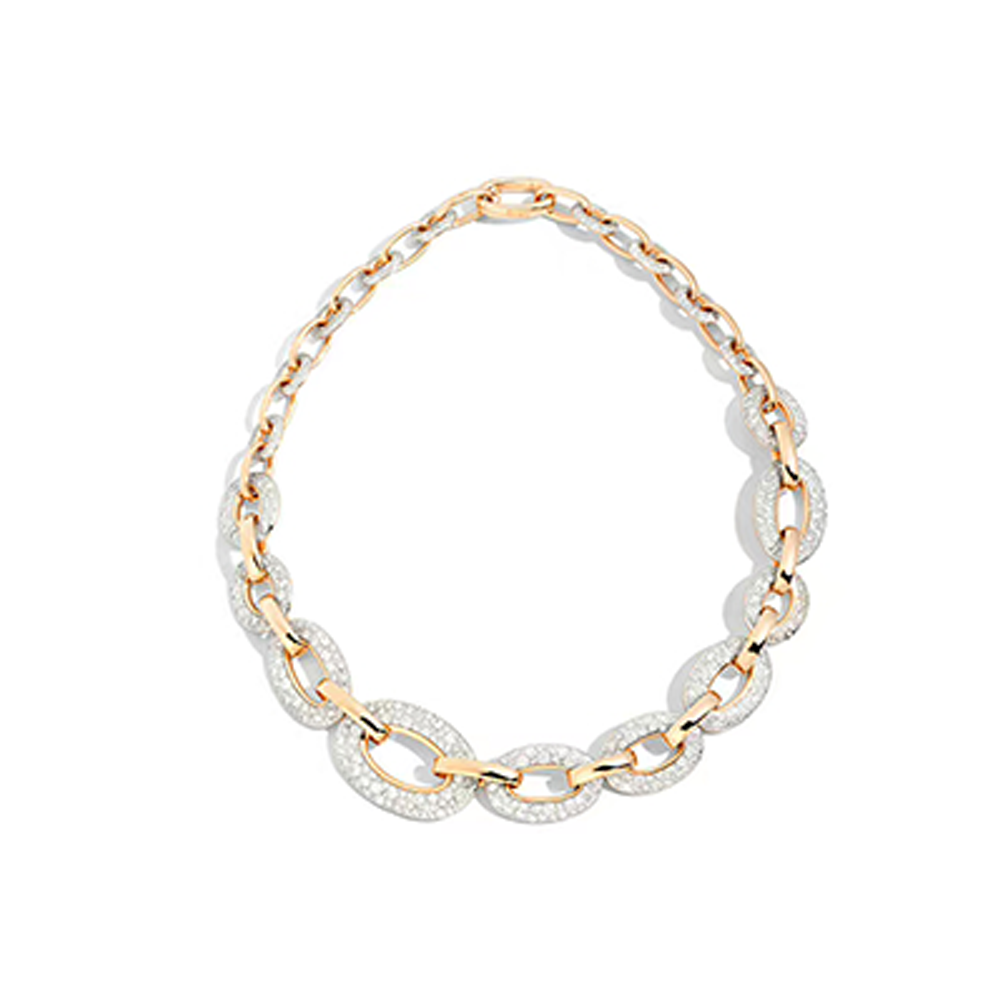 比如各种链环元素,就来自于Pomellato在上个世纪六十年代的经典设计Gourmette链条。1960年代以反思和反叛闻名,黄金链条的设计寓意摆脱桎梏,一经推出就广受欢迎。