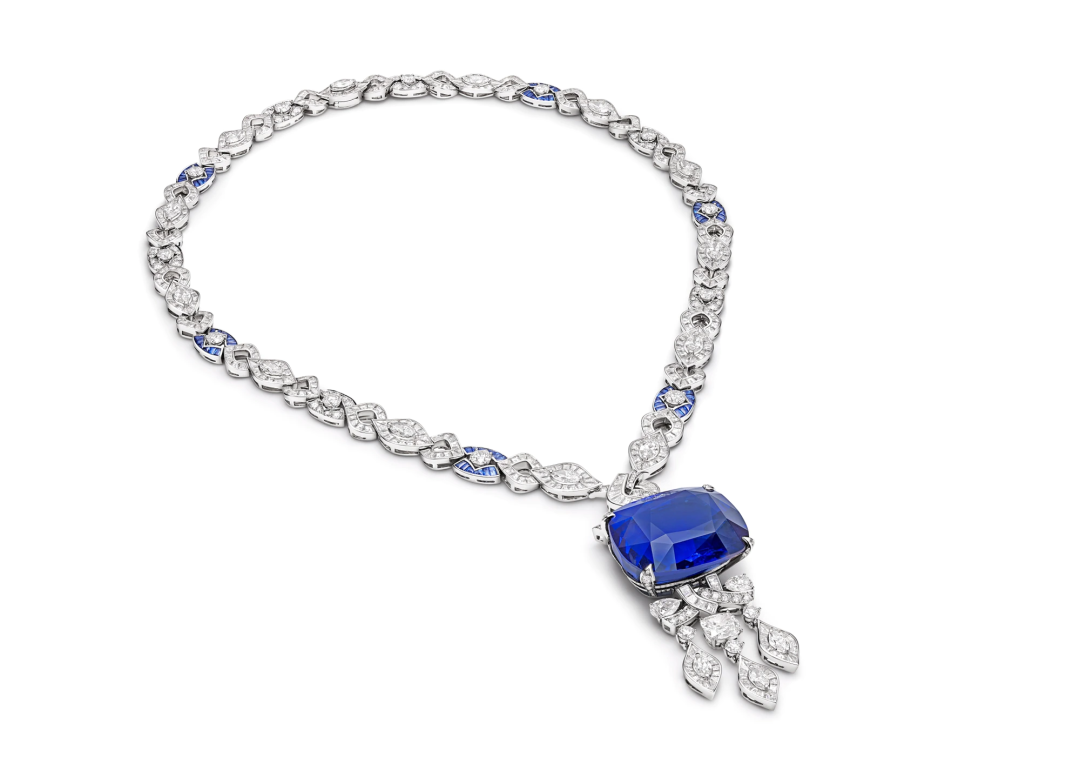 Caroline Scheufele女士本人就佩戴了一条心形切割60.03克拉的蓝宝石项链。灵感来自《泰坦尼克号》里的海洋之心。