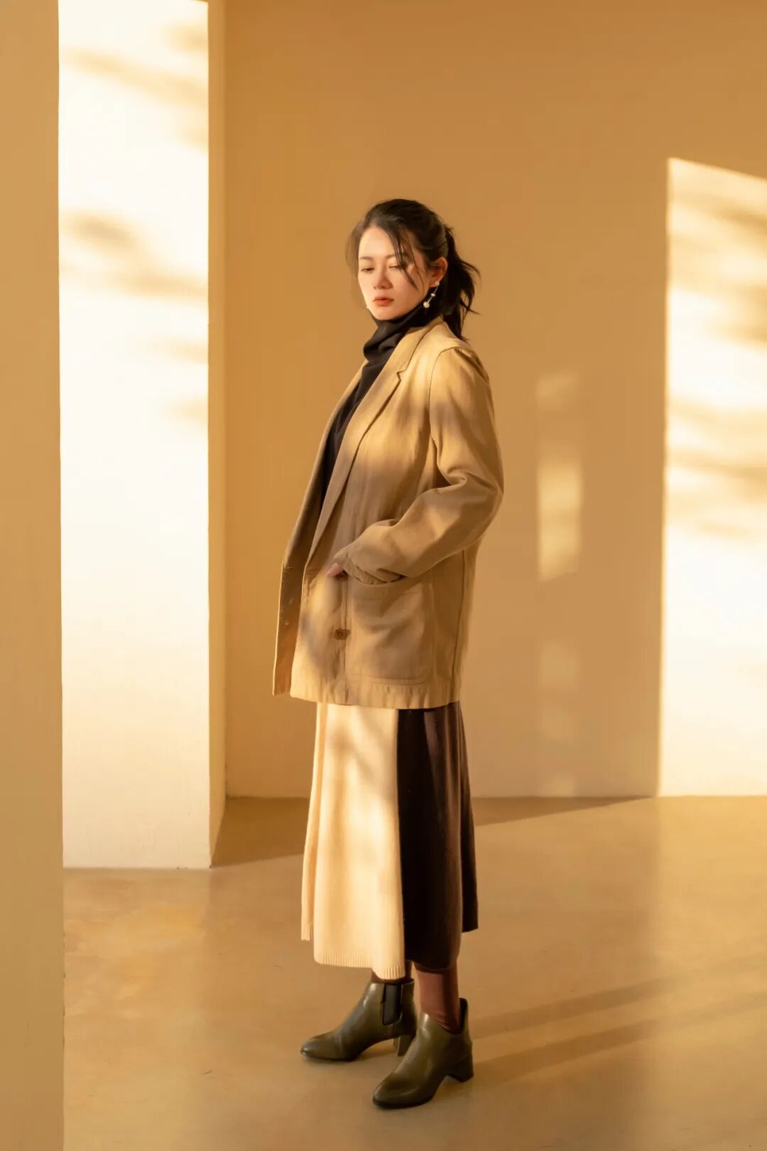这里是蓝黄小姐产品提前购买的专用通道,妈妈男友闺蜜再也不担心我抢不到产品了!马上就要到2022年的最后一个月了,这两天窝在家里看球赛,越窝越冷,索性翻出了之前的各种羊绒衣物,打理好整齐地码在衣柜里,备不时之需。没办法,天气渐寒,想穿得轻盈且暖乎的我们对羊绒产品就是这么地依赖。它的舒适度无法体现在照片上,但只要穿过的姑娘们肯定知道有多舒服。如果能够一件T恤+一件足够保暖的衣物就过一季,谁愿意层层叠叠套着压身负担呢?考虑到无论是我们近期发售的一系列羊绒羊毛新品,还是去年的羊绒衫,羊绒围巾,以及贴身保暖又轻软的打底针织套装,就姑娘们的购买反馈来看,大家都挺满意的~刚好趁着寒冬未至,咱们一起“查缺补漏”,看看还缺什么用起来正正好的冬日贴心恩物~- 羊毛拼色半裙 -