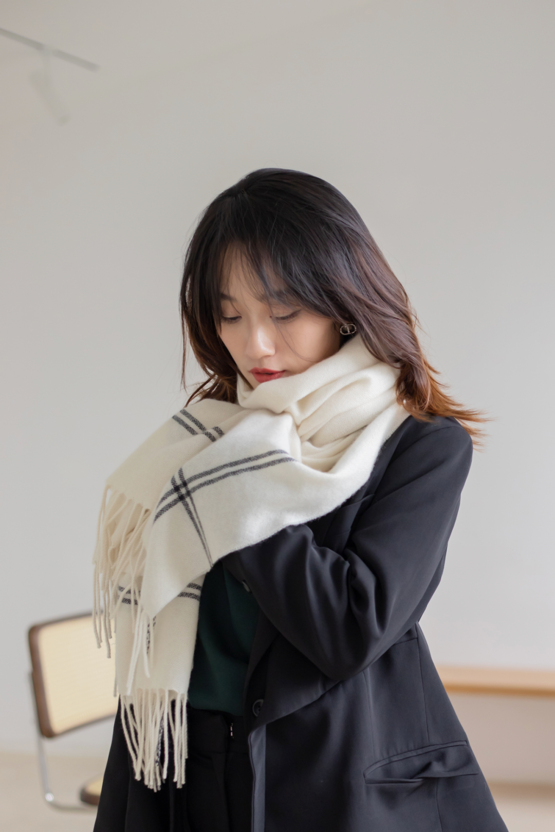 这是一件可以是立领、堆领,甚至不规则斜开领的羊毛羊绒高领毛衣。版型依旧是在细节上下足功夫,领口的精巧小金扣可以变化多种造型,羊毛+羊绒材质,细腻柔软,拿在手上有份量,穿上身轻软保暖,就是这个冬天第一时间想要穿上的毛衣!单穿非常显瘦显薄,我这种膀大腰圆的人也穿得略纸片人,做内搭很提气又百搭,感觉哪一件外套都是它亲姐妹。摸起来密密实实,穿起来又轻轻松松,一款两色,浓郁又活泼的虞美人红和人人都适合的经典黑。看中了的姑娘可要抓紧机会啦~这是一条70*176cm的100%原生态白山羊绒围巾,很好品质很舒服,也好打理,够轻软够蓬松也够暖。价格是799,之前没抢到的姑娘们可以戳下面的小程序啦:这款全羊绒围巾是我身边所有人试戴过都非常喜欢并且不愿意放下的,当然,我们也希望它会是你这个冬天买到的一件绝对值得的好物。毕竟这样的价格配这样的材质的baby cashmere,在别处可能找不到。如果天冷了薄款围巾不够用,正好可以买条更暖和一点的纯羊绒围巾换着围,这样也能更好的呵护羊绒制品。