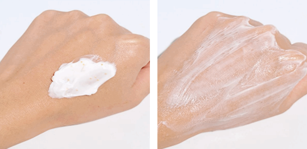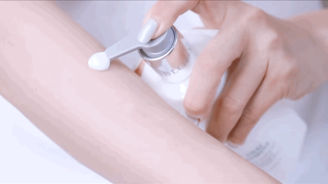 它的质地看起来很浓稠绵密,像酸奶一样,但涂在皮肤上就是丝滑触感,瞬间就被吸收了,甚至都不需要晾。