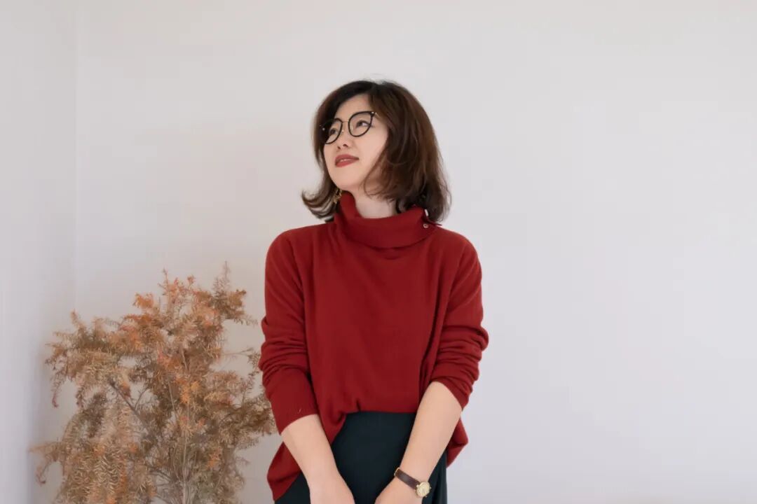 这个设计也是为了帮助勾勒出衣服自身的轮廓。而且罗纹边是一片先织好再缝上衫身,减少了衣服两侧的缝骨,穿着更加舒适。我们自己的产品基本都是我自己在市面上找不到才为了满足自己的需求而开始做的,当然,颜色也是。今年穿衣服我很迷恋红色,大家都知道的原因,现在这种环境,穿衣裳就好需要穿点提气的颜色来给自己加油鼓劲,所以我们今年出来很多红色单品,每一件大家拿到手是不是都觉得好美?今天这件羊毛羊绒衫的红色也不例外,是浓郁又活泼的虞美人红,穿上身马上就觉得自己被点亮了,而且非常耐看,又不浮躁,真的是越穿越爱。小霞在拍照时,一直让我站在光影下,说感觉这件毛衣“五彩斑斓的红”。
