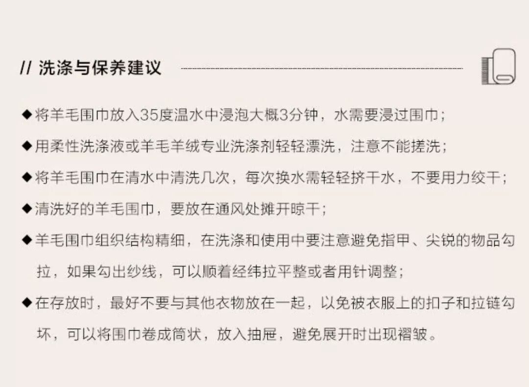 这条围巾可以说是同类制品中比较钢铁的存在了,但是讲真,纯羊毛真的是难伺候一点,你想,它是让你皮肤都觉得舒服的再柔软不过的东西,你怎么能随意就把它和粗糙的化纤的东西放在一起使劲厮磨呢?