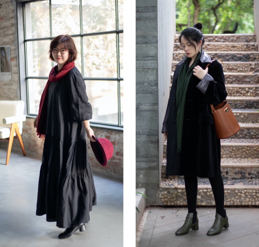 所以,为了让它成为最好搭配也最有质感的颜色,这个有沉淀感的、饱满的、一眼就很秋冬的松绿色,我们也是试了好几次的。